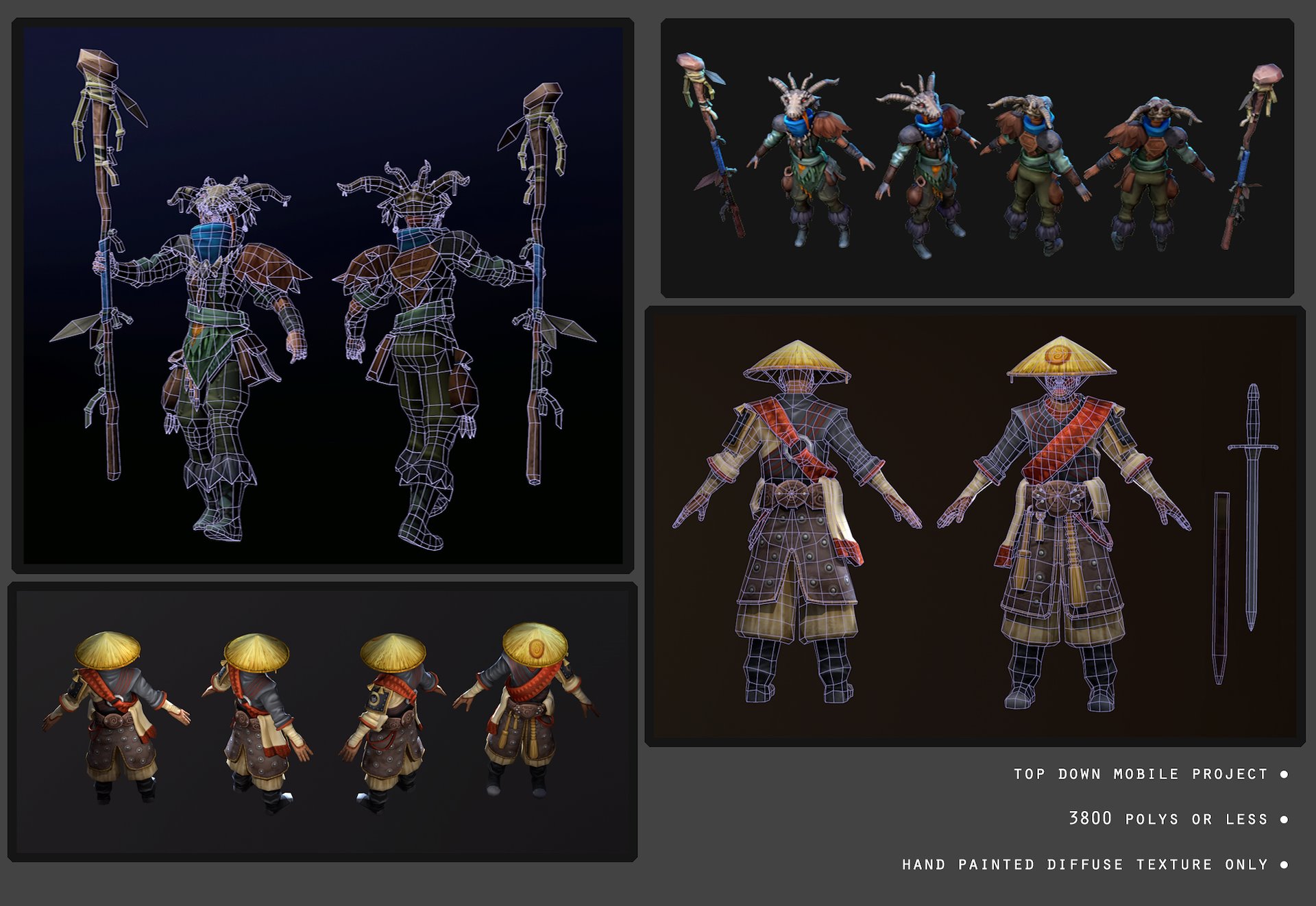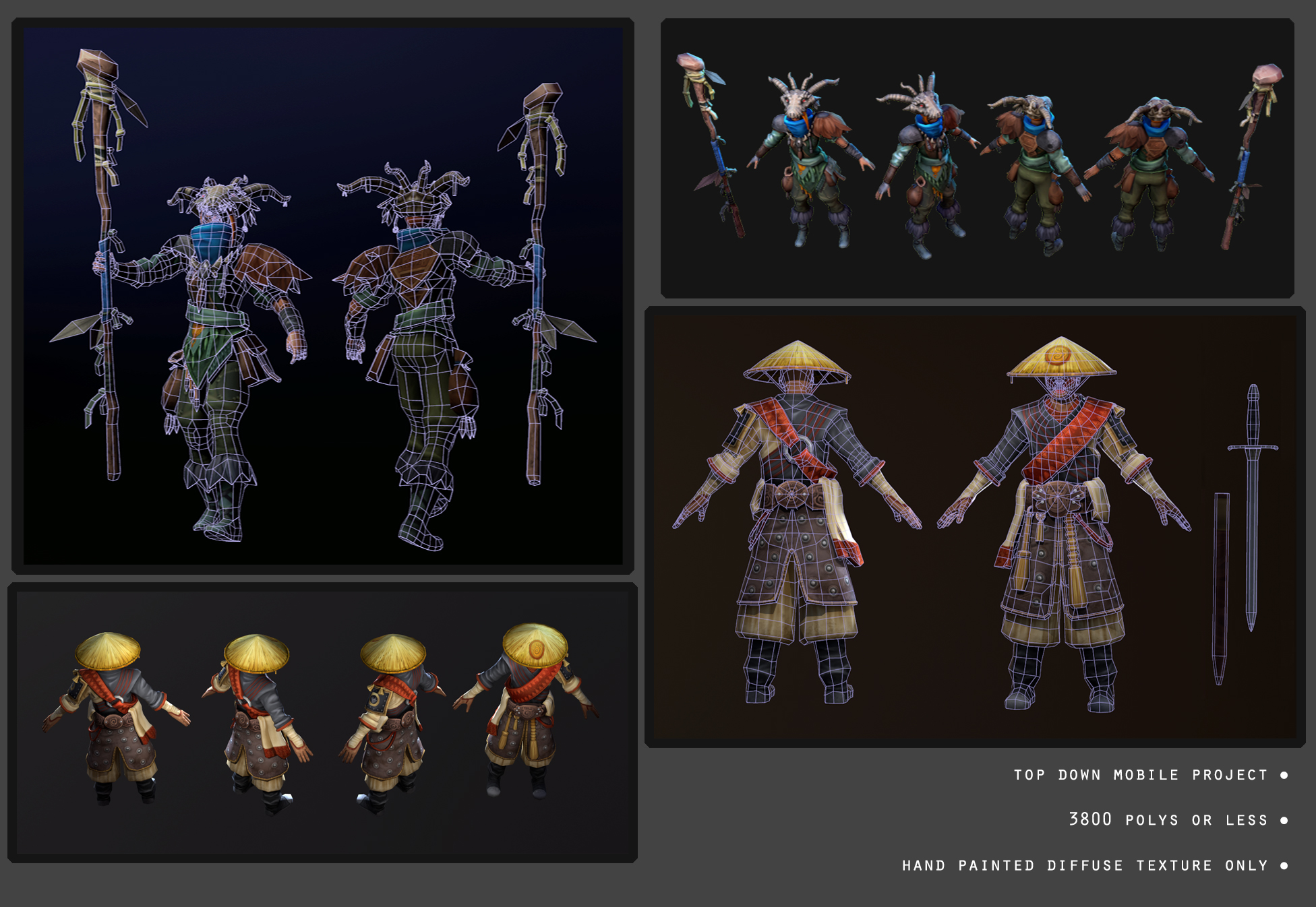 I worked on a few character and associated prop assets for this project. It was a fun challenge working within a tight poly count and with textures restricted to only a diffuse map. Intended for a top down dungeon crawler kind of mobile game.