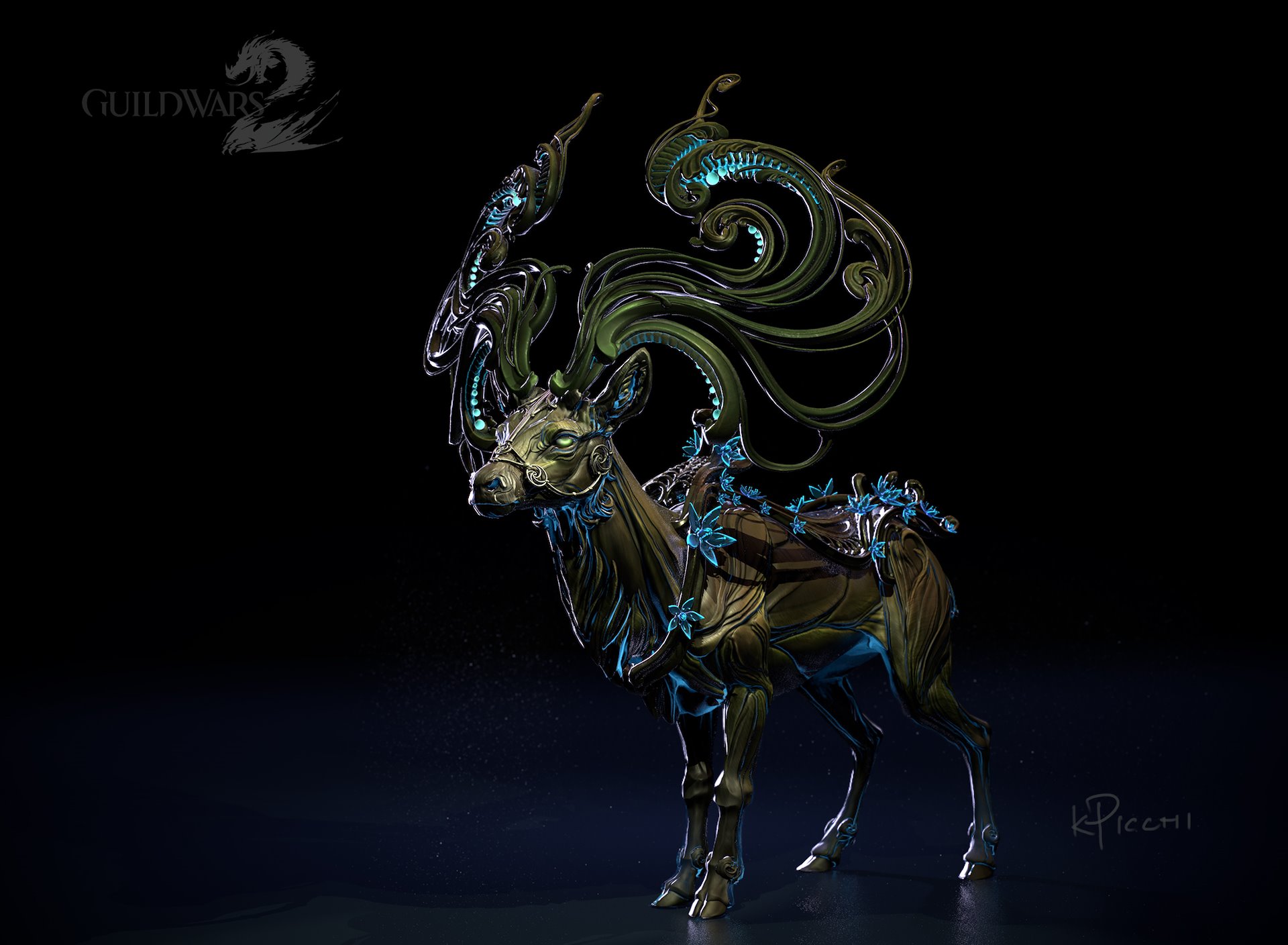 Like all of our mount skins, this skin is 100% dyeable in game with four different color slot options for players to customize their look. In this case the separate dyeable areas are: 1) body 2) antlers 3) accessories and saddle 3) eye, effects and flowers.